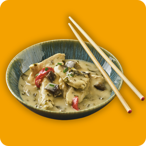 Découvrez des recettes inspirées des traditions, tout droit sorties de la cuisine Thaïlandaise, Birmane ou encore Japonaise, comme notre curry vert thaï au poulet FR